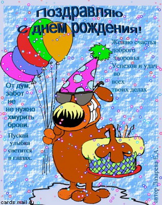 | НикС, Поздравляю с Днем Рождения! Продолжай и дальше радовать всех форумчан (и родных) потрясающим чувством юмора! Переноси это всё в сценарный формат, и радуй зрителя!!!