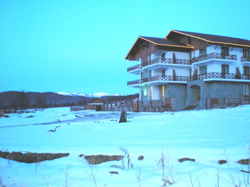 | Отель в Букуриани, где мы жили неделю. Была теплая зима, таял склон. Сиял черными залысинами. Зима... Ах...